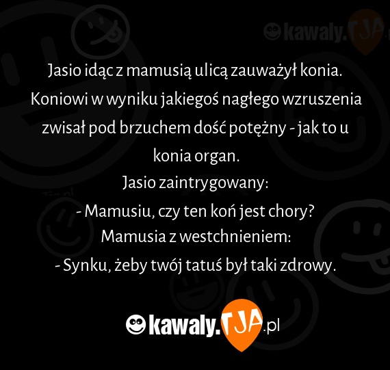 Koniowi w wyniku jakiegoś nagłego wzruszenia zwisał pod brzuchem dość potężny - jak to u konia organ.