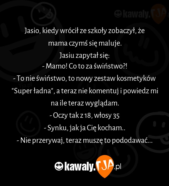 Jasio, kiedy wrócił ze szkoły zobaczył, że mama czymś się maluje.