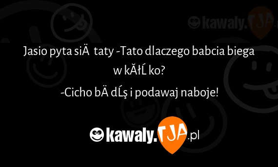 Jasio pyta sie taty -Tato dlaczego babcia biega w kolko? -Cicho badx i podawaj naboje!