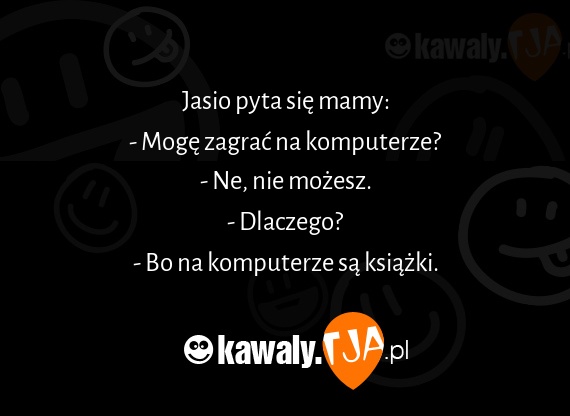 Jasio pyta sie mamy: - Moge zagrac na komputerze? - Ne, nie mozesz. - Dlaczego? - Bo na komputerze sa ksiazki.