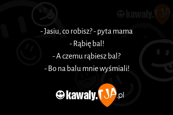 - Jasiu, co robisz? - pyta mama - Rabie bal! - A czemu rabiesz bal? - Bo na balu mnie wysmiali!