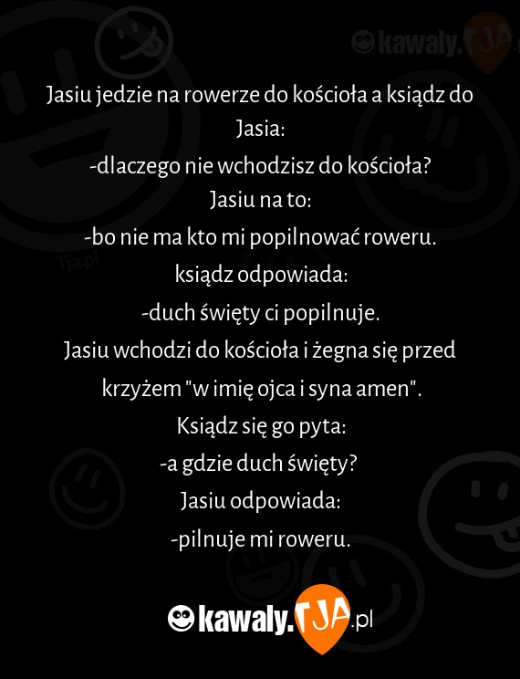 Jasiu jedzie na rowerze do kościoła a ksiądz do Jasia: