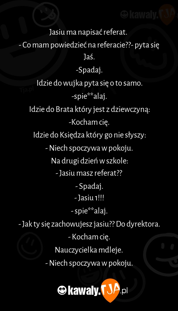 - Co mam powiedzieć na referacie??- pyta się Jaś.