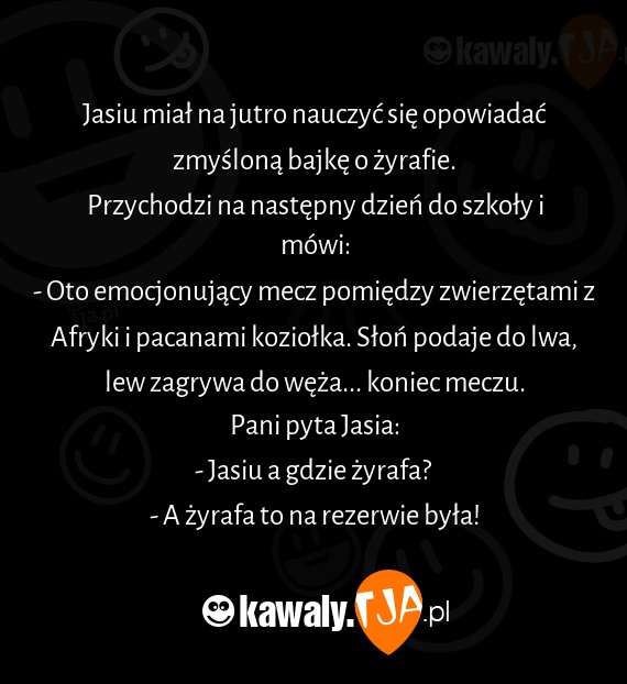 Jasiu miał na jutro nauczyć się opowiadać zmyśloną bajkę o żyrafie.