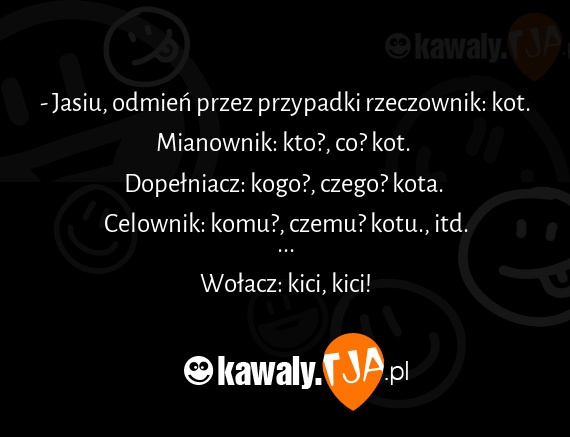 [url=https://kawaly.tja.pl/dowcip,jasiu-odmien-przez-przypadki]- Jasiu, odmień przez przypadki rzeczownik: kot.