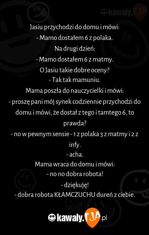 Jasiu przychodzi do domu i mówi: