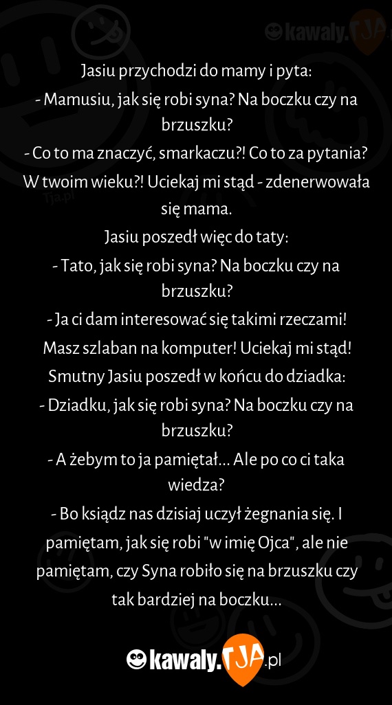 - Dziadku, jak siÄ™ robi syna? Na boczku czy na brzuszku?