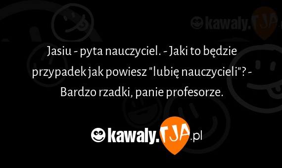 Jasiu - pyta nauczyciel. - Jaki to będzie przypadek jak powiesz "lubię nauczycieli"? - Bardzo rzadki, panie profesorze.