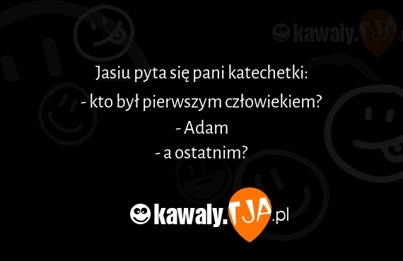 Jasiu pyta się pani katechetki: - kto był pierwszym człowiekiem? - Adam - a ostatnim?