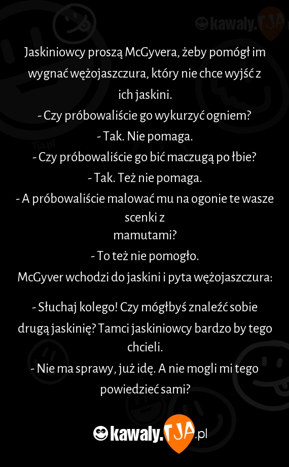 McGyver wchodzi do jaskini i pyta wężojaszczura: