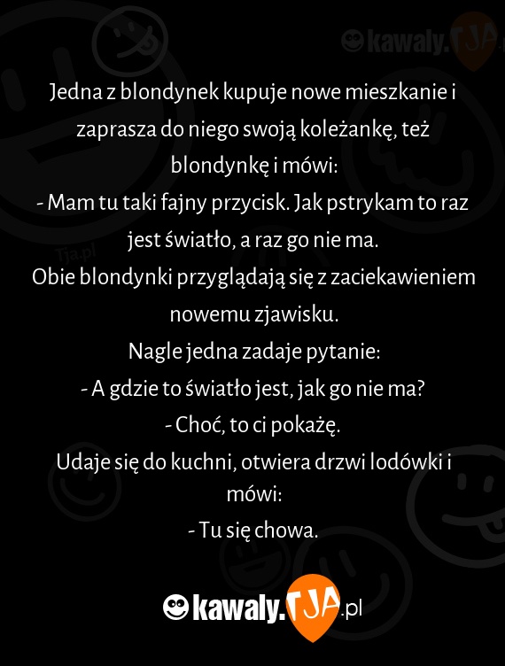 Jedna z blondynek kupuje nowe mieszkanie i zaprasza do niego swoją koleżankę, też blondynkę i mówi:
