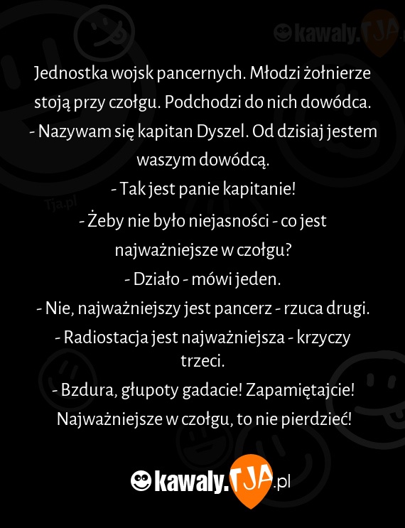 - Bzdura, głupoty gadacie! Zapamiętajcie! Najważniejsze w czołgu, to nie pierdzieć!