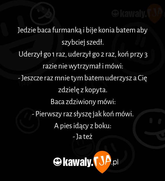 Uderzył go 1 raz, uderzył go 2 raz, koń przy 3 razie nie wytrzymał i mówi: