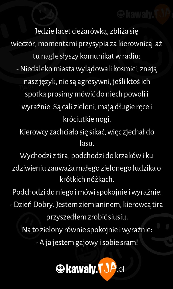 - Dzień Dobry. Jestem ziemianinem, kierowcą tira przyszedłem zrobić siusiu.