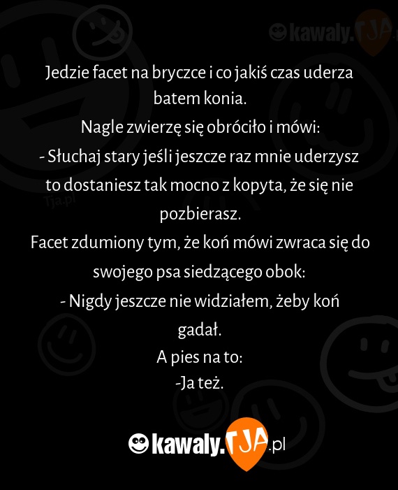 Jedzie facet na bryczce i co jakiÅ› czas uderza batem konia.