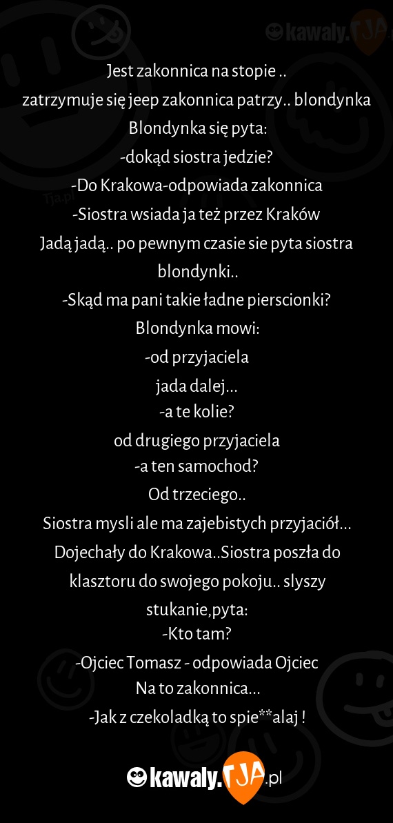 Dojechały do Krakowa..Siostra poszła do klasztoru do swojego pokoju.. slyszy stukanie,pyta: