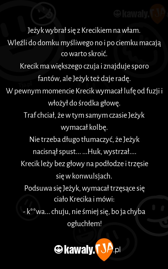 - k**wa... chuju, nie śmiej się, bo ja chyba ogłuchłem!