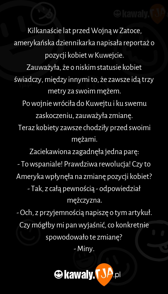 Kilkanaście lat przed Wojną w Zatoce, amerykańska dziennikarka napisała reportaż o pozycji kobiet w Kuwejcie.