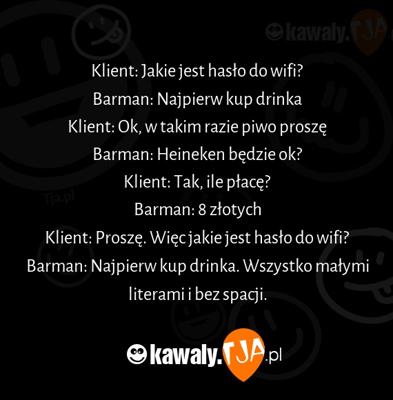 Barman: Najpierw kup drinka. Wszystko małymi literami i bez spacji.