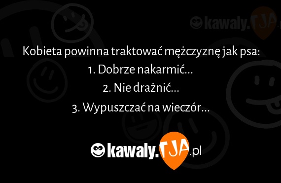 Kobieta powinna traktować mężczyznę jak psa: 1. Dobrze nakarmić... 2. Nie drażnić... 3. Wypuszczać na wieczór...