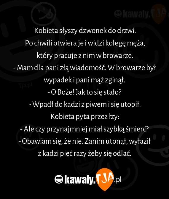 - Obawiam się, że nie. Zanim utonął, wyłaził z kadzi pięć razy żeby się odlać.
