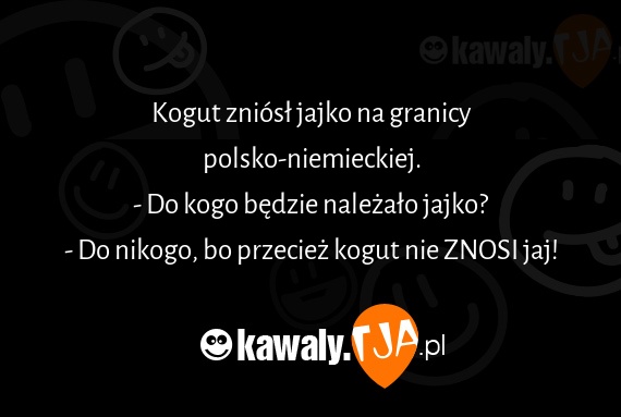 Kogut zniósł jajko na granicy polsko-niemieckiej. - Do kogo będzie należało jajko? - Do nikogo, bo przecież kogut nie ZNOSI jaj!