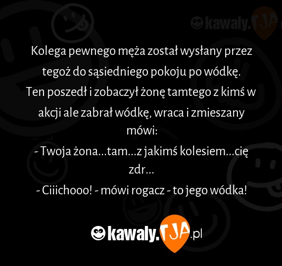 Ten poszedł i zobaczył żonę tamtego z kimś w akcji ale zabrał wódkę, wraca i zmieszany mówi: