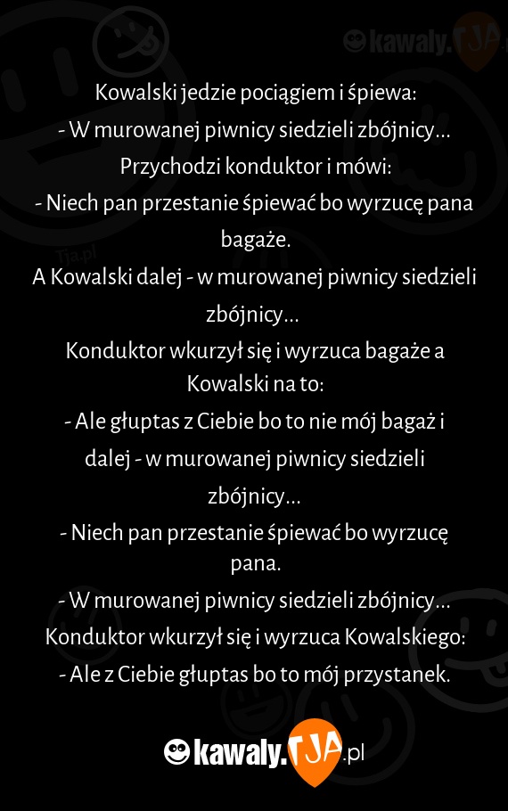 Konduktor wkurzył się i wyrzuca bagaże a Kowalski na to: