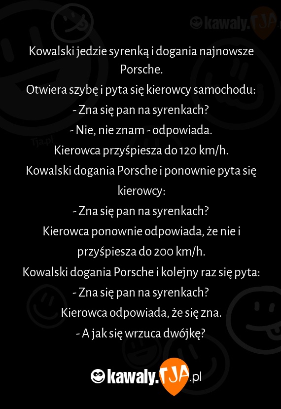 Kowalski dogania Porsche i ponownie pyta się kierowcy: