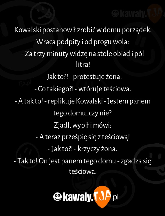 - A tak to! - replikuje Kowalski - Jestem panem tego domu, czy nie?