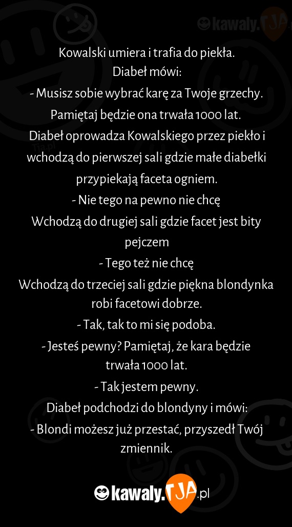 Kowalski umiera i trafia do piekła.