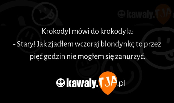 Krokodyl mówi do krokodyla: - Stary! Jak zjadłem wczoraj blondynkę to przez pięć godzin nie mogłem się zanurzyć.