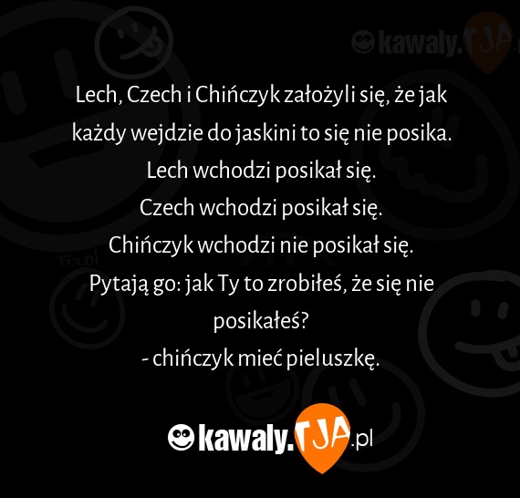 Lech, Czech i Chińczyk założyli się, że jak każdy wejdzie do jaskini to się nie posika.