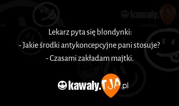 Lekarz pyta się blondynki: - Jakie środki antykoncepcyjne pani stosuje? - Czasami zakładam majtki.