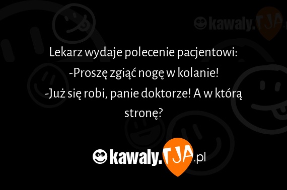 Lekarz wydaje polecenie pacjentowi: -Proszę zgiąć nogę w kolanie! -Już się robi, panie doktorze! A w którą stronę?