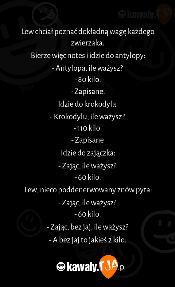 Lew chciał poznać dokładną wagę każdego zwierzaka.