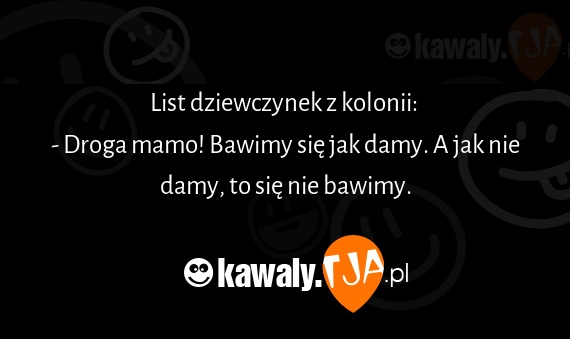 List dziewczynek z kolonii: - Droga mamo! Bawimy się jak damy. A jak nie damy, to się nie bawimy.