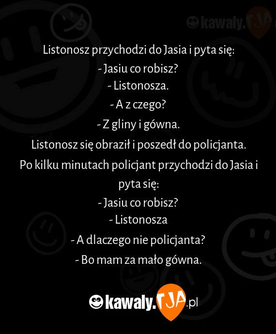 Po kilku minutach policjant przychodzi do Jasia i pyta się: