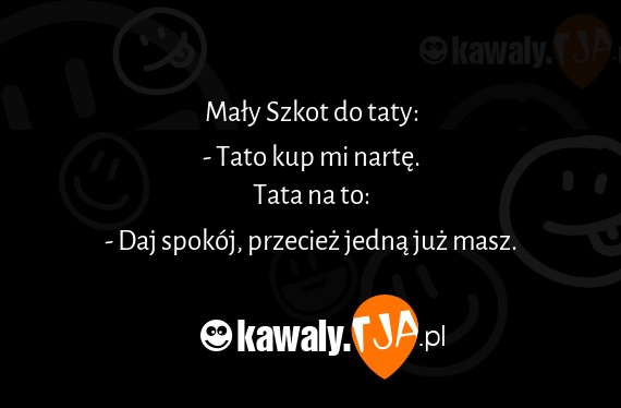 Maly Szkot do taty: - Tato kup mi narte. Tata na to: - Daj spokoj, przeciez jedna juz masz.