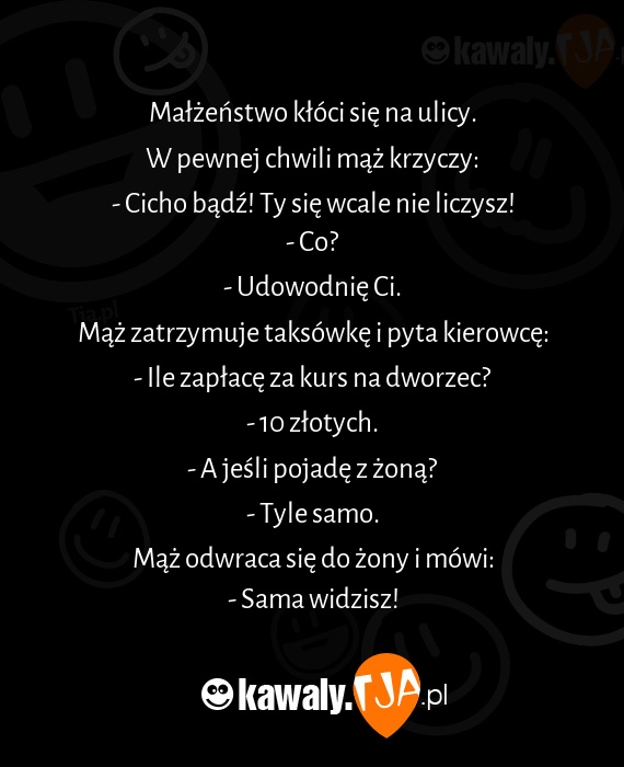 Mąż zatrzymuje taksówkę i pyta kierowcę: