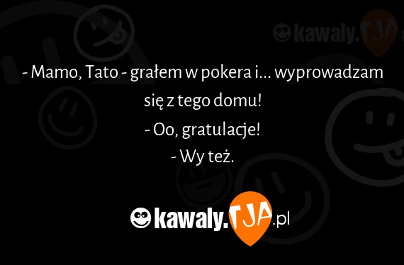 - Mamo, Tato - gralem w pokera i... wyprowadzam sie z tego domu! - Oo, gratulacje! - Wy tez.