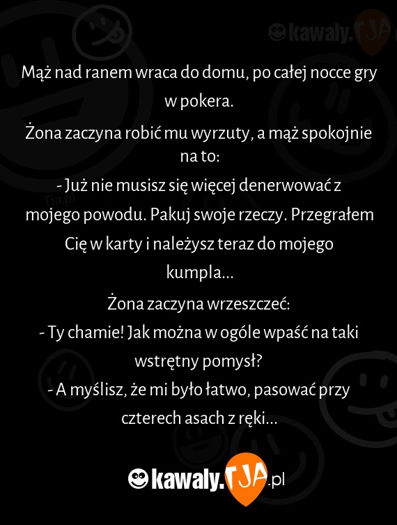 Mąż nad ranem wraca do domu, po całej nocce gry w pokera.