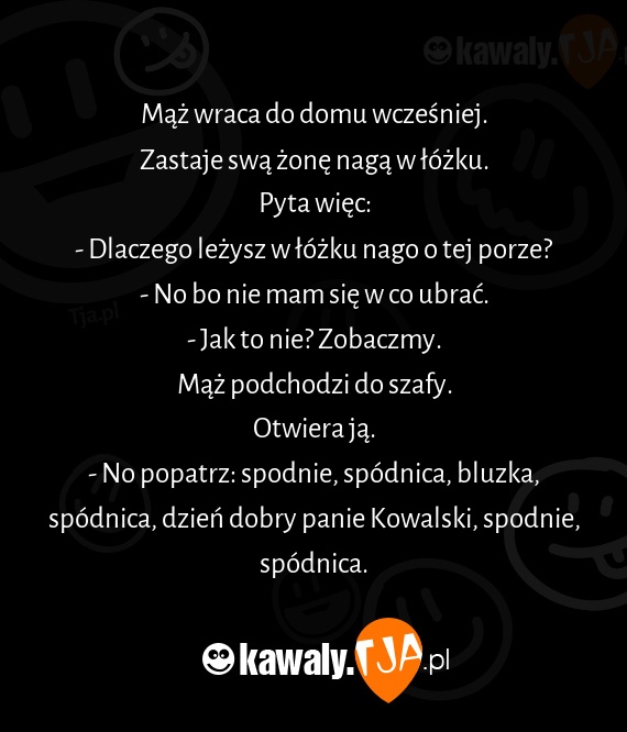 - No popatrz: spodnie, spódnica, bluzka, spódnica, dzień dobry panie Kowalski, spodnie, spódnica.