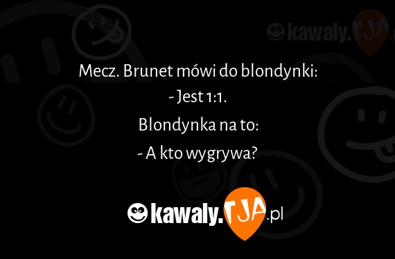 Mecz. Brunet mowi do blondynki: - Jest 1:1. Blondynka na to: - A kto wygrywa?