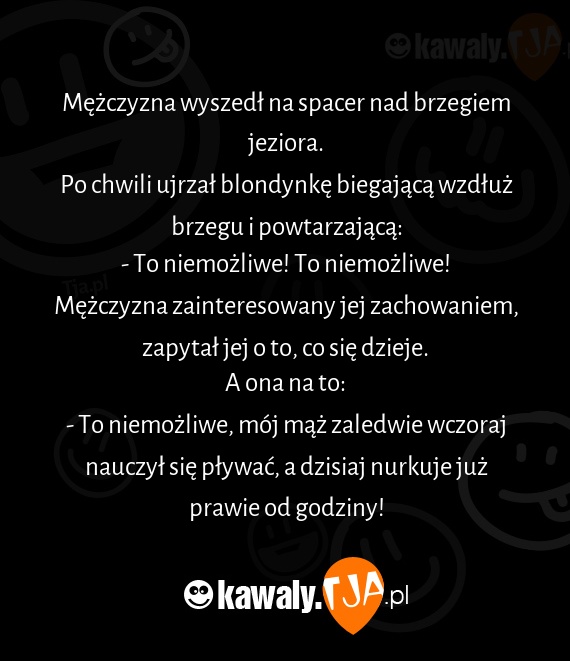 - To niemożliwe, mój mąż zaledwie wczoraj nauczył się pływać, a dzisiaj nurkuje już prawie od godziny!