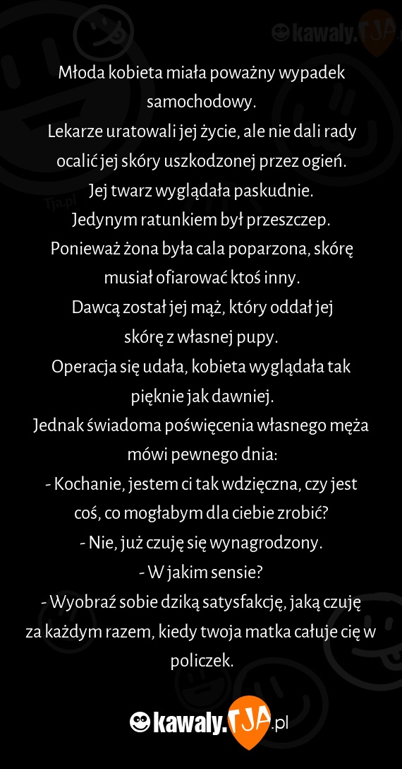 Ponieważ żona była cala poparzona, skórę musiał ofiarować ktoś inny.