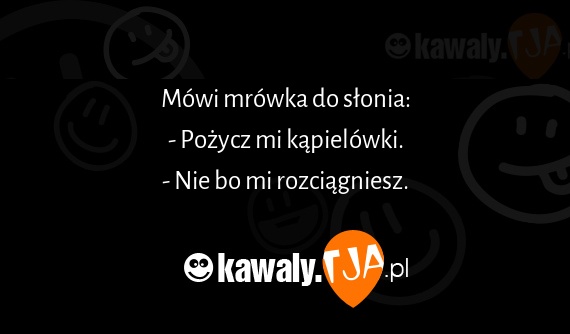 Mowi mrowka do slonia: - Pozycz mi kapielowki. - Nie bo mi rozciagniesz.