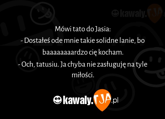 Mowi tato do Jasia: - Dostales ode mnie takie solidne lanie, bo baaaaaaaardzo cie kocham. - Och, tatusiu. Ja chyba nie zasluguje na tyle milosci.