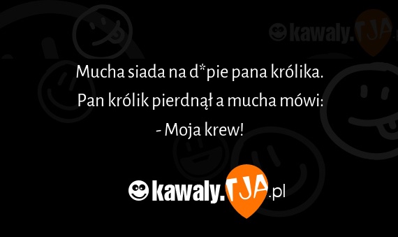 Mucha siada na d*pie pana królika. Pan królik pierdnął a mucha mówi: - Moja krew!