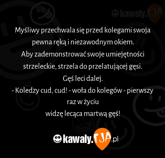 Myśliwy przechwala się przed kolegami swoja pewna ręką i niezawodnym okiem.